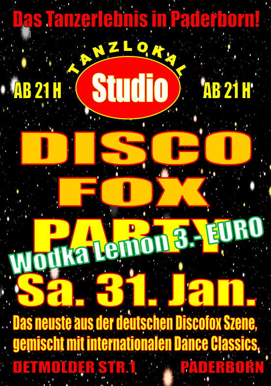 Fox ist natürlich immer und überall dabei, nur eben immer etwas anders aufbereitet. Aber keine Angst, auch wenn Sie lieber solo tanzen sind Sie bei uns gut aufgehoben. Unsere DJs präsentieren Ihnen das neuste aus den internationalen Charts. Neue Hits, neue Interpreten, neue Trends usw.